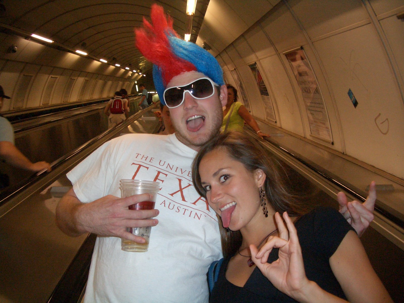 Tres and I on the metro escalator after the game