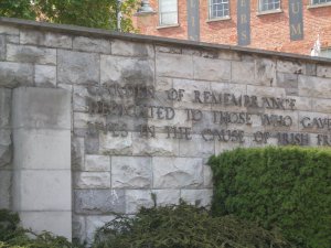After we got off the flight, we checked into our hostel, the Four Courts Hostel, and met up with our friend Taj from law school who came to Dublin with us before his law summer abroad program. Then Meryl and I walked around while Harris napped. The hostel was right across from the Courthouse, so we saw that, and then the Christ Church Cathedral. We also saw the Viking area and the city wall from 1260 AD. We were hungry for lunch and we kept seeing people walking around with paper bags so we followed one of them and asked them what they were eating and where they got it. It was the traditional fish and chips meal from the oldest chippery in Dublin so we walked over there to buy some. It was so delicious-fried cod and fries. Dublin definitely had the best food of any place we have been so far. We also saw a few statues and the Garden of Remembrance of Irish soldiers.