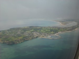 Fortunately, we made it to the airport in one piece and on time. Then we got breakfast, which made me very happy. It actually had real fried eggs, something I have not had since I left, and ham. When we were landing, it was really clear and you could see all of the cliffs on the coast. It was so beautiful.