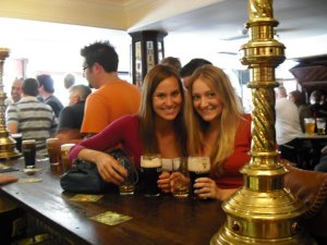 We got to Temple Bar and walked in and everyone was dancing and singing…it was so much fun. There were at least ten stag and hen parties (equivalent to our bachelor/bachelorette parties) so everyone was pretty crazy. We had so many boys hit on us that night. It was a little ridiculous. Right when we walked in we met a guy named Alberto from Italy who told us he wanted to hang out with us all night. Then we met some guys that were from Belgium, but one of them had lived in Tampa. They bought us shots of Sambuca and Meryl accidentally dropped her shot glass after taking it. The guys thought this was hilarious, so they started throwing shot glasses on the ground. Then we met some guys from the UK who kept trying to convince us that they were 23, when I’m sure they were about 17. We also met up with a group we had met at the hostel from France that were fun! We also made some friends from Ireland, and Meryl was very excited because one of the girls was from the same area that her family was from so she got to hear about that. They were really nice and we wanted to stay out, but we went home early because we had a big day planned for Sunday.