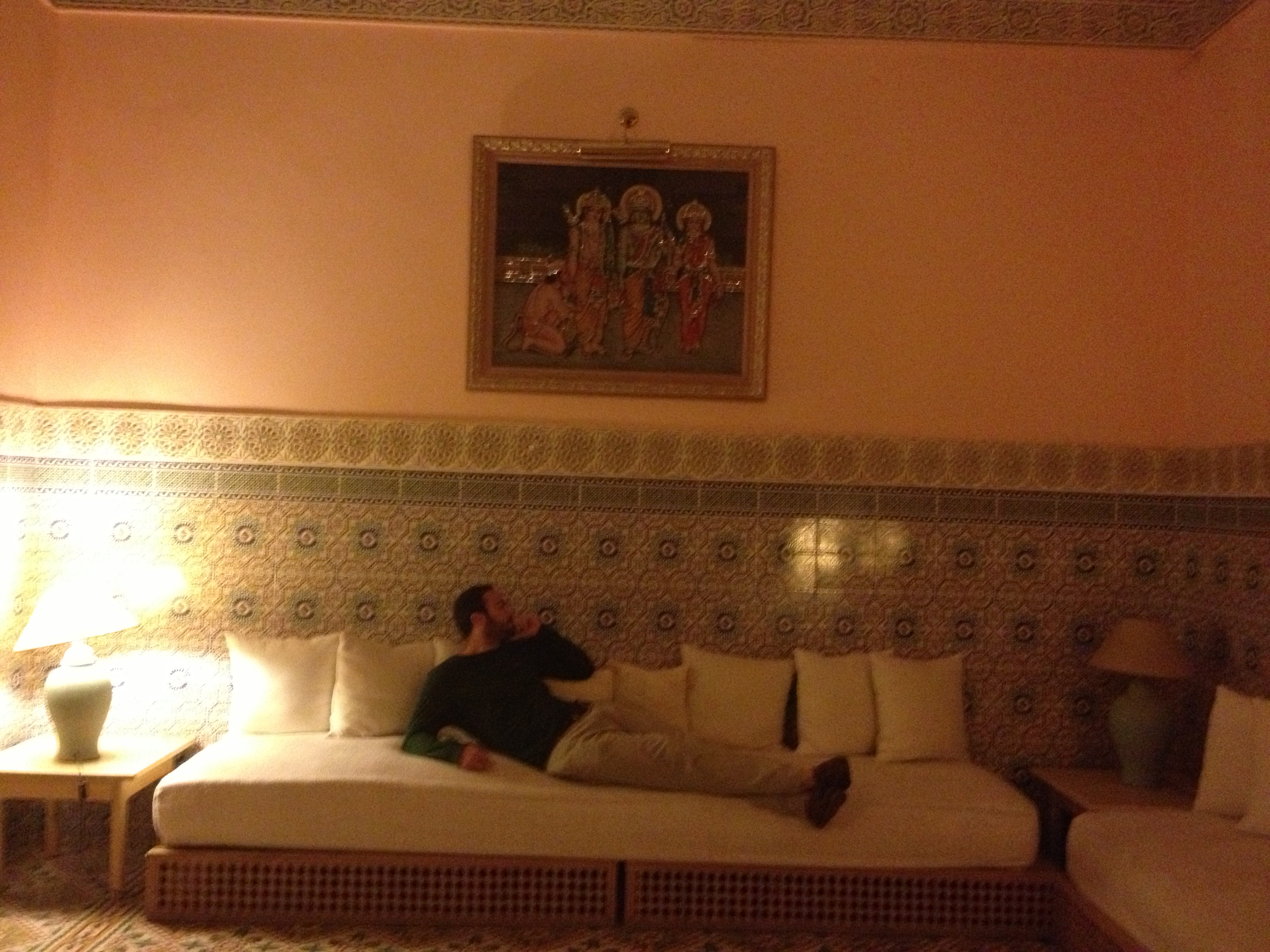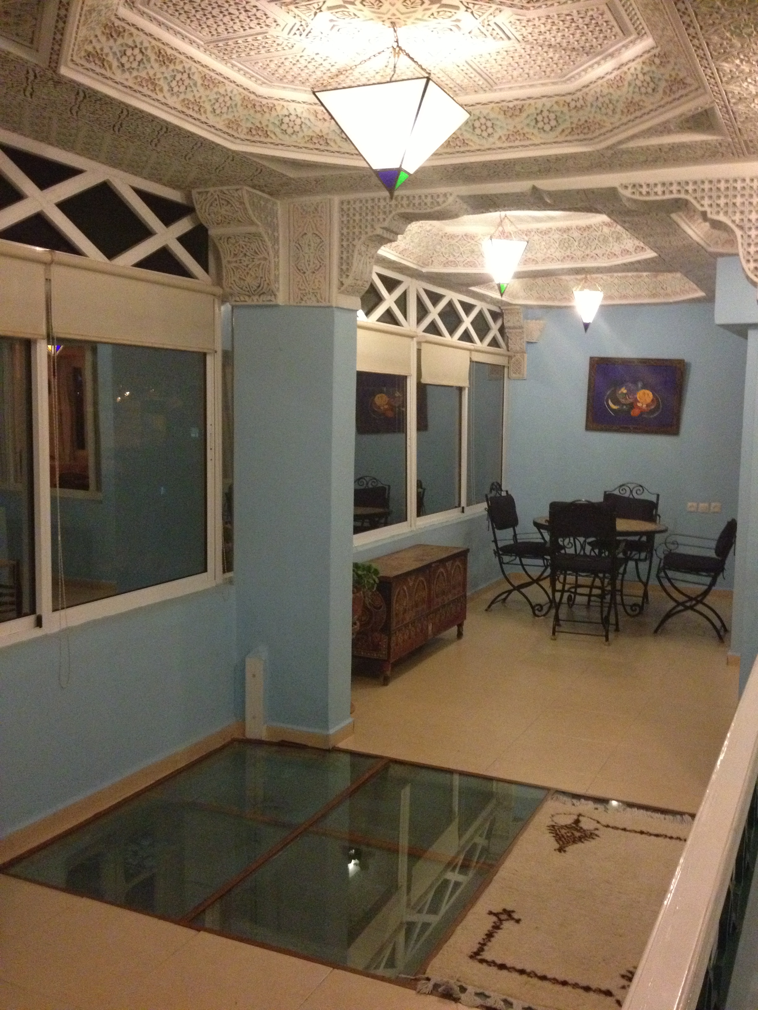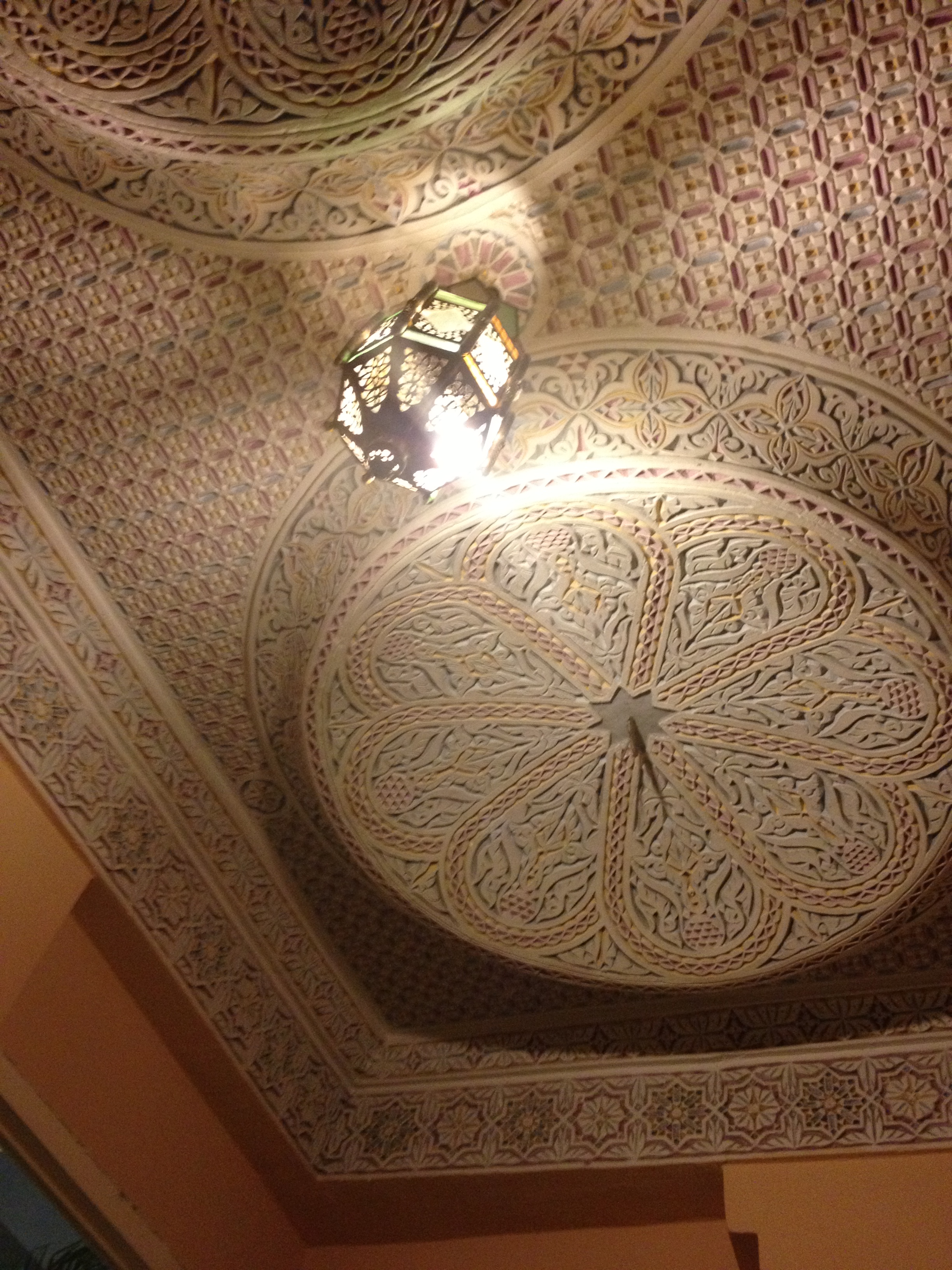 The riad also has several gorgeous sitting areas to relax, eat (the amazing) breakfast, listen to music, or read. There is a rooftop deck and observation room with 360 degree windows looking out over Tangier and across the Mediterranean to Spain. The observation room has a stereo system with music, books, and magazines, so it was a nice place to relax. I think Dar Jameel would be a great place to stay anytime, but especially if you have an extended visit.