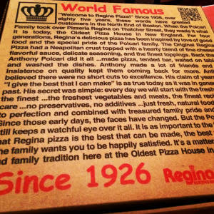 Regina Pizzeria, original location at 11 1/2 Thacher Street, Boston, MA 02113