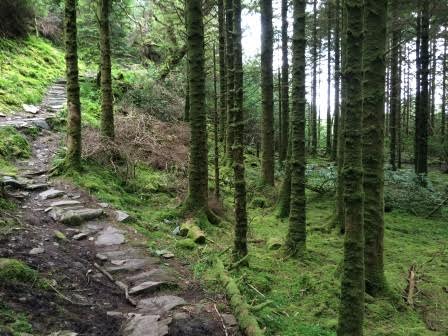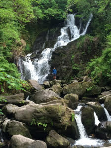 One of my favorite parts about traveling to Europe in the summertime is the amount of daylight. The sun rises at 5 and sets at nearly 10, making for plenty of daylight for activities and adventures. We arrived at The Muckross in early afternoon and set off to hike around the Torc Waterfall in Killarney National Park. As soon as we started the hike, Alex and I were both amazed by the sheer amount of green we saw. I’ve never seen more green in my life and I will never forget the incredible beauty of the forest. The hike to Torc Waterfall is only about a quarter-mile or so, but the falls themselves are very impressive. There are several trails beyond the waterfall that connect throughout the park (see the trail map here) in a loop for a few miles. We started the loop, but weren’t sure how long it was so ended up hiking out and back to the top of Torc Mountain. It was a beautiful trail and we saw some gorgeous views from the mountain peak.