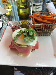 After settling in at the hotel, we had lunch and Coronas at the hotel restaurant, Hoyt’s Chicago. I had the ham and cheese sandwich, a delicious sandwich on buttery brioche, with black forest ham, herb and cheddar béchamel, a fried egg, and arugula, all perfectly paired with sweet potato fries.