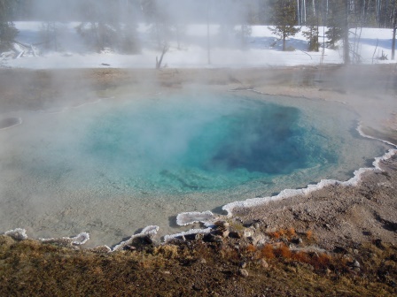 I thought it was interesting how the snow melted off of some trees, but created icicles on other trees that were close to the steam from the geysers.