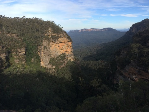 Once you are in town, you can walk to most of the major sights or catch a free local bus which will take you to the same sights. Alternatively, there is a hop-on, hop-off Blue Mountains Explorer bus for $31 for adults. When we arrived in Katoomba, we walked through the town to the Three Sisters lookout. The Three Sisters is a large rock formation which represents a local Aboriginal legend. The legend says that three sisters, who were members of the Katoomba tribe, had fallen in love with three sisters from the competing Nepean tribe. The tribes went to war over the sisters so a local witch doctor turned the sisters to stone to protect them. In a tragic turn of events, the witch doctor was killed in the war and the sisters remained forever memorialized in stone.