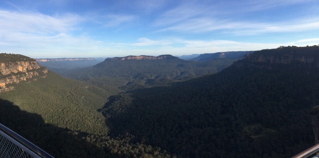 From the 3 Sisters, we hiked to the Katoomba Cascades and then on to Scenic World, where we ate lunch in the cafeteria. Scenic World offers a 360 degree view of the region through the Scenic Skyway rail car, a ride down into the valley on the Scenic Cableway (the steepest rail car in the Southern hemisphere), and a hike through the rainforest along the Scenic Walkway. All of this is $35 and they appear to pack people into the cars so we opted to skip Scenic World and continue with our (free) hike.