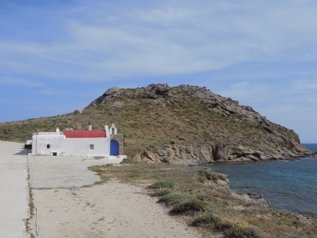 We drove to Kalafatis and Divounia beaches, where there is a small fish tavern village. Nearby is Agia Anna, a very rocky beach with a quaint church and large hotel in close proximity to one another.