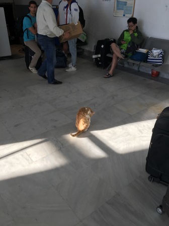 When we arrived, we checked into the Cape Mykonos for our two day/one night stay on the island. The hotel was just setting up for the season; in fact, the hotel was opening that day and we were the first guests to arrive! The hotel was clean and bright and our balcony had a beautiful view of Mykonos Bay. My only complaint would be that the wi-fi was spotty in the room, so we had to go to reception when we needed the internet.