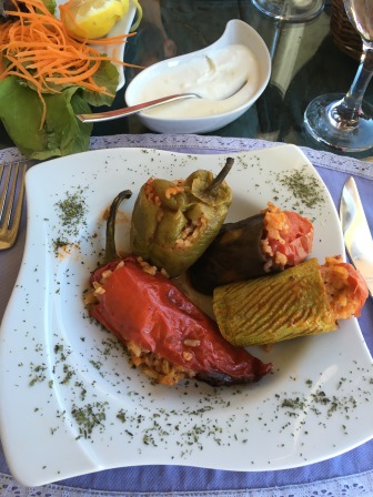 After settling into our luxurious cave room, we ventured over to the Seten Restaurant for lunch. Seten is also owned by the owners of the Kelebek Cave Hotel and it is a short walk from the hotel. The food is outstanding and is made fresh daily in the traditional Anatolian way, much of it over an open fire in the courtyard. The restaurant is stunning and you can’t go wrong whether you eat inside or outside. The prices are very reasonable. We had a multi-course meal with wine for around $40. And the complimentary bread dip, a delicious combination of peanuts and pumpkin, sesame, and apricot seeds, was excellent! If we had more time, I would have definitely signed up for the all-day cooking class, where you will purchase ingredients at the local market and create a full meal for only 50 euros each. What to order: bulghurballs, stuffed artichoke hearts, lamb skewers, stuffed squash flowers, figs stuffed with walnuts, apricots stuffed with pistachio, local wine.