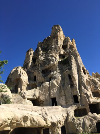 We walked off our delicious lunch with a 25 minute walk to the Goreme Open Air Museum, a UNESCO World Heritage Site, and Tokali Church. The museum features the region’s best collection of painted cave churches which were built in Byzantine times by Christian monks. Although the “fairy chimneys” (the name for the unique, cone-shaped caves formed from volcanic stone) were inhabited since the Hittite times, they are most well-known for the cave churches. It was fascinating to see how this ancient group of monks lived together and you could even see kitchen tables and benches carved from stone. The Tokali Church is about 50 meters away from the entrance to the Open Air Museum and is a stunning structure made up of 4 main chambers with religious frescoes. Cost: 25tl (about $8) for the Open Air Museum and Tokali Church, additional 12TL ($12) for the Dark Church (Karanlik Kilise), additional cost for audio tour.