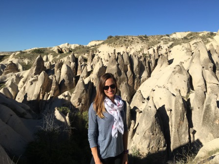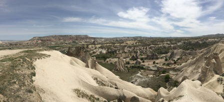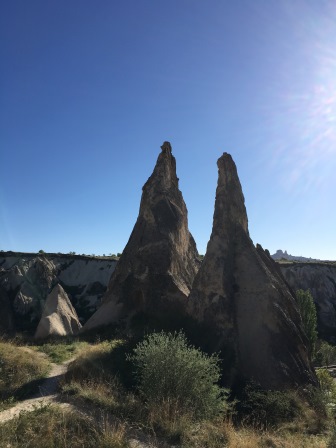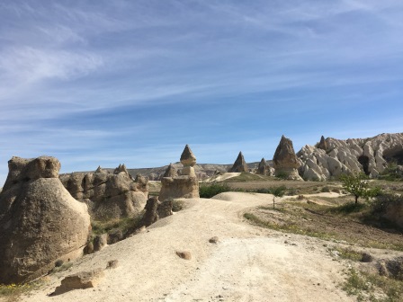On the way back, we hiked around Rose Valley for a bit, admiring the unusual geological formations and taking photos. This area looks like another planet and was created by volcanic eruptions millions of years ago. Cappadocians made their homes in the fairy chimneys for years because the rock formed from ash, lava, and basalt provides a natural cooling system in summer and heating system in winter. Cappadocians also recognized the possibility of making wine using the volcanic soil and cave cellars and the region is will known for its wine industry.