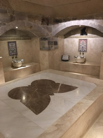 Before retiring for the evening, we went to the hamam for our traditional Turkish peel and soap massages. It was one of the most relaxing experiences I have ever had. Alex and I were first instructed to change into pestemals (Turkish towels, which by the way, are not made for tall people) and sit in the sauna for ten minutes. There, we were greeted by our masseuses who brought us into the sicaklik, or hot room. Our masseuses poured bowls of hot water all over our bodies and then scrubbed and exfoliated our skin from head to toe. Next, the masseuses sprayed soapy bubbles all over us. I could not stop giggling during this part. The sound of the bubbles was hilarious to me and every time I cracked an eye open, I saw a mountain of bubbles covering Alex and me! Once we were sufficiently covered in bubbles, the masseuses gave a full body massage before rinsing us off with another round of hot and then cool water. The treatment ended in the sogukluk, or cool room, where we fell asleep rested until we dried off. The traditional treatment was so relaxing and our skin felt soft and smooth afterwards. You cannot go to Turkey without experiencing this treatment and it is much more affordable in Cappadocia than anywhere I looked in Istanbul!