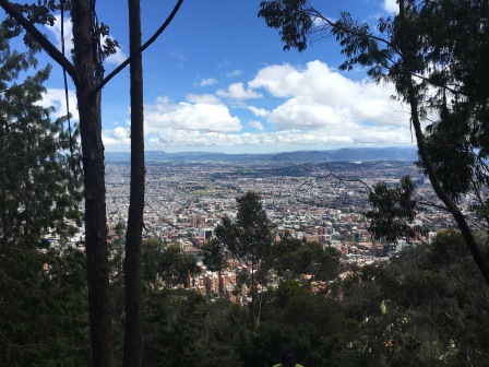 Hi from Bogota! We are on the cable car returning from Montserrat in this photo