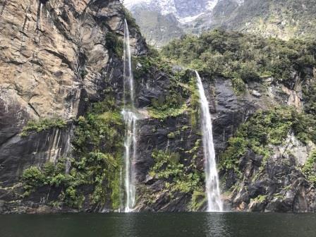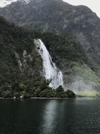 After our jump, we drove to the Top 10 Holiday Park hotel in the town of Te Anau, set on the edge of a lake and surrounded by mountains. We woke up early to drive to Milford Sound for a scenic boat ride with Southern Discoveries through the fjords. While on the boat ride, we saw penguins and seals and drank fresh glacier water from a waterfall.