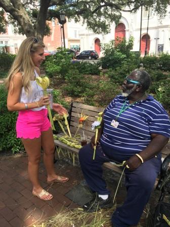 Surprise from our guide: Samantha getting serenaded with handmade flowers by a local legend!