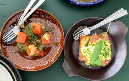 After the tour ended, we walked over to Oaxen Krog and Slip on Djurgarden Island, based on the recommendation of one of my favorite foodie friends, for lunch at Oaxen Slip, a two star Michelin bistro. We went for the 3 course lunch special (one meat dish, one fish dish, and one vegetarian dish for 145 SEK), but unfortunately the restaurant was not serving the special as it was a holiday. They were offering their weekend brunch menu, so we had to order a la carte items, making our lunch much pricier. We shared a small snack of smoked salmon and the roasted brioche with a 63 degree egg and sausage. Both were beautiful dishes that tasted as amazing as they looked and we enjoyed them on the patio outside in the crisp air.