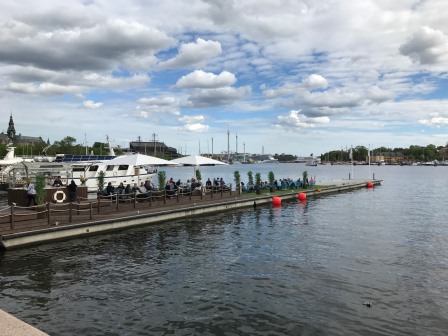 Just outside of Vasa Museum were several food trucks so we shared a second late lunch course of a grilled haloumi sandwich while enjoying the harbor views. One of my favorite parts of Stockholm were the many cafes on docks in the water. On our way back to the hotel for the evening, we stopped at Strandbaren, which offered rose, champagne, beer, and non-alcoholic beer in a beautiful setting overlooking the water. It was the perfect way to reflect on our time in Stockholm and get ready for the next portion of our trip, in Norway.