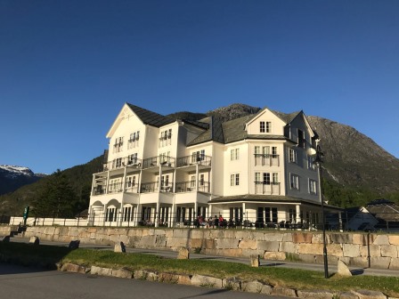 • The perfect place to stay near Vøringfossen is at Quality Hotel Voeringfoss in Eidfjord. It is a beautiful historic building at the edge of the fjord surrounded by mountains. A stay includes a large breakfast buffet and the hotel bar and restaurant that also serves lunch and dinner. Ask for a fjord-facing room if possible, knowing that certain days of the week, a large cruise ship may be anchored in the fjord, blocking your view.