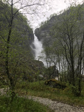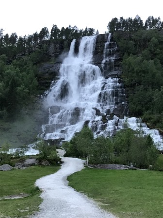 Day 4: Original plan: Hike to Vettisfossen and Ingjerdbu cabin; revised plan due to inclement weather: drive to Vinje, hikes to Stalheimfossen and Tvinnefossen, visit Nesheimstunet farm.