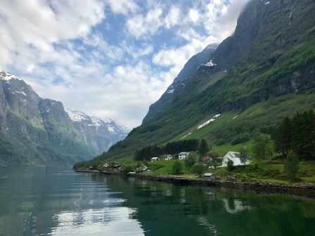 • To rest your legs from Trolltunga and all of the other hikes you’ve done, take a ride on the scenic Flam Railway. The ride is only 2 hours and takes you from sea level at the Sognefjord in Flåm to the Myrdal mountain station at 867 meters elevation. You’ll see incredible mountain views, waterfalls, and go through 20 tunnels. It is one of the steepest railways in the world, with most of the journey at a 5.5% gradient. Halfway up, you’ll stop to see a Huldra dancing on the beautiful Kjosfossen. Be careful – it is said her siren song lures men into the mountains! You can ride the train back, or if you’re up for it, rent a bike for a 20 km ride back to the Flam train station.  Also from Flam, you can take a ferry cruise through Nærøyfjord to Gudvangen. The fare includes a bus ride back to the parking area in Flam. During the ferry ride, you’ll encounter stunning snow-capped mountains that rise 1800 meters around you with countless waterfalls from the snowmelts. You’ll also see the quaint, colorful villages along the fjord and can say you’ve been to a UNESCO World Heritage site.