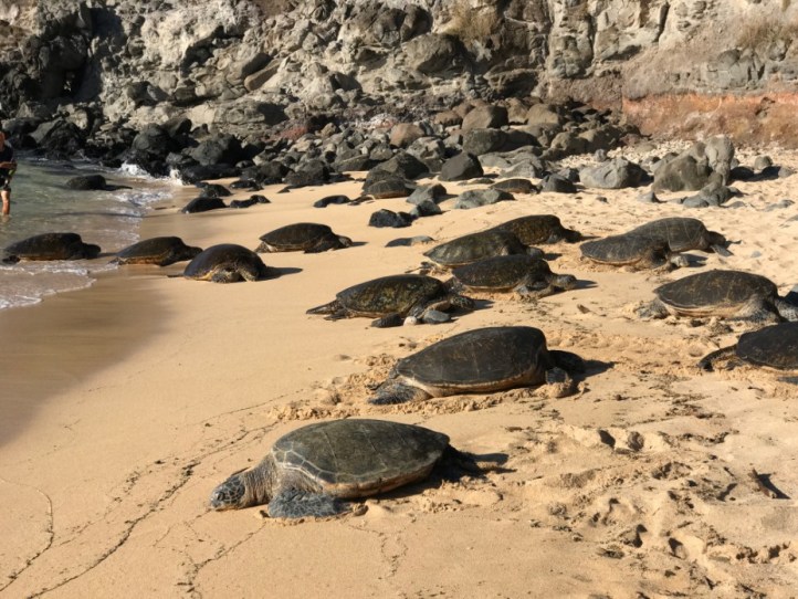 While I could easily have stayed in Maui for a few weeks, the 5 nights we spent on the island were the perfect amount of time and allowed us to spend time in each of the distinct regions of the island. To do this, we spent 2 nights in the Kihei/Wailea area, 2 nights in Paia/Haiku, and 1 night in Kahului near the airport before our flight home. We took day trips to Haleakala National Park and the beaches in Lahaina. While each area had a distinctive feel, my favorite was Kihei. Lahaina is a popular part of the island, but caters to tourists with its many beach resorts and chain restaurants and stores. Paia and Haiku offer a more local ambiance and some great beaches for surfing and other wind sports. In my opinion, Kihei was the perfect balance – while there were nice hotels and resorts, there weren’t nearly as many as in Lahaina so it retained more of the local feel. My favorite part was the famous “Turtle Town” located in Kihei where we were able to swim, stand up paddleboard, and kayak with the beautiful Hawaiian green sea turtle daily.