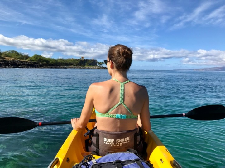 As mentioned before, South Maui was my favorite part of the island. I love wildlife, so being able to swim with Hawaiian green sea turtles was a dream come true for me. Kihei is the place to be when it comes to seeing the incredible turtles. Don’t feel like you need to go with a tour operator; I only had to wade out from the shore outside our hotel to find them swimming about. The hotel next door to ours offered rentals including kayaks, snorkel equipment, and SUP (stand up paddleboards). We took advantage of all of them to spend time with the turtles. We easily found large groups of them swimming in the many ocean coves and then just jumped in to join them. A great place to get in the water with them if you’re not staying in the area is at the Kama’ole Beach Park.