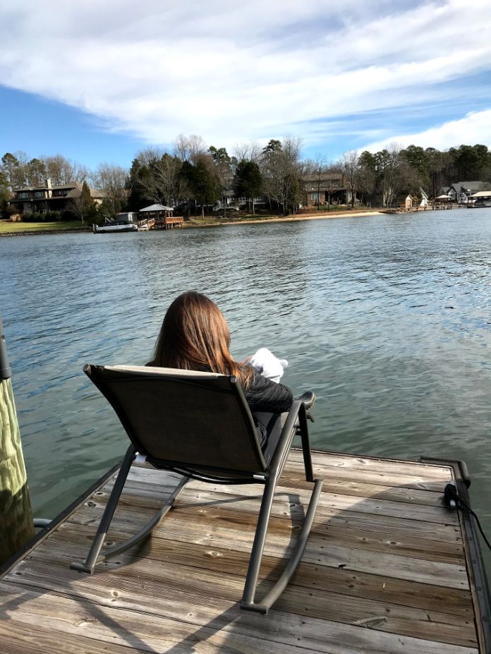 Relaxing on the dock of our Airbnb