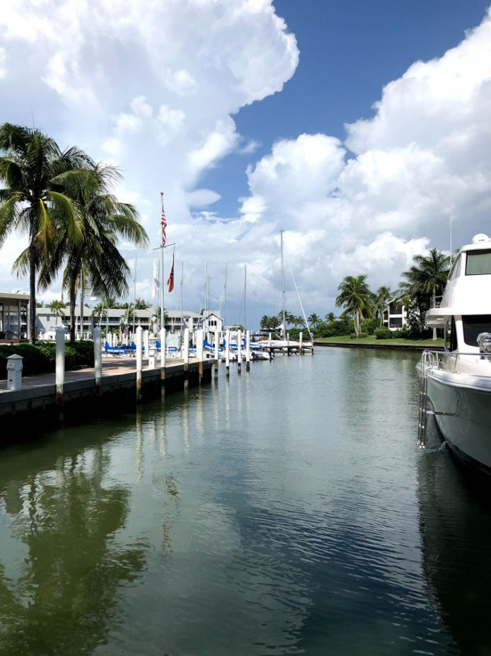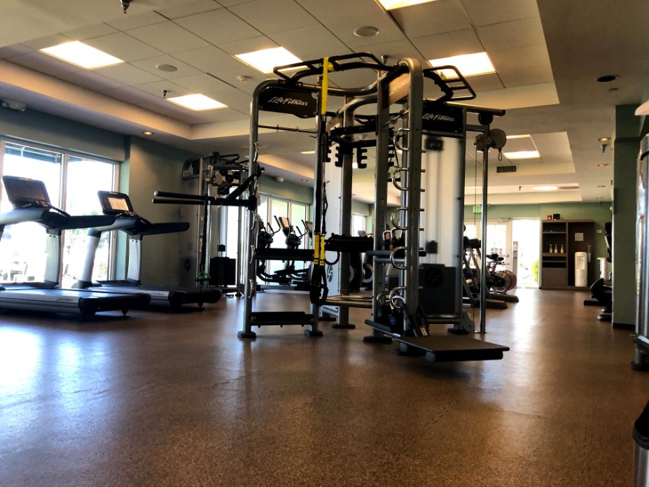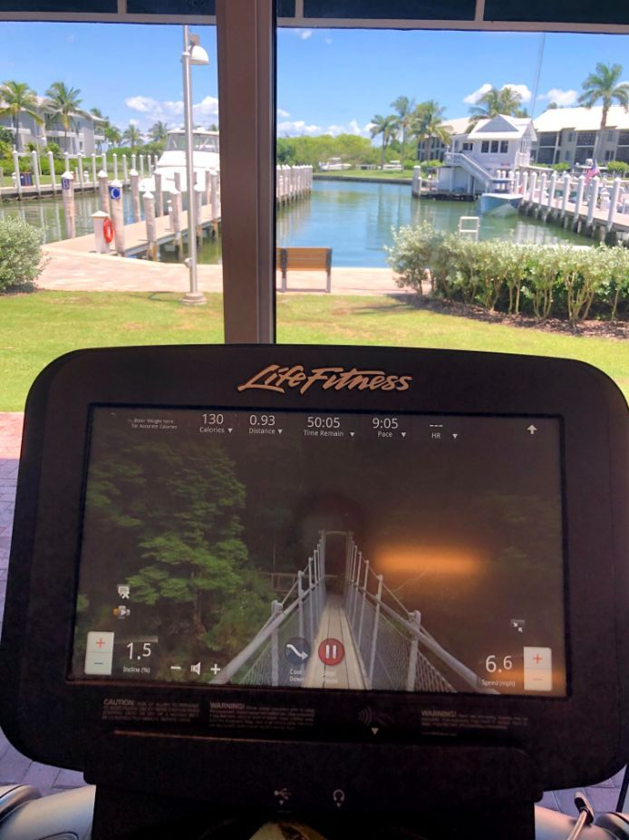 Most of the on-site restaurants were open, though hours were limited. The grocery store was closed for shopping, but available for ordering groceries for pickup. Amenities like the gym and pool slide for children were open, but were closed occasionally for cleaning. Both times we worked out at the gym (immediately after a cleaning closure), we were the only ones using the facility. The gym was fantastic with updated equipment and a beautiful view of the harbor, where you can frequently see manatees. I especially enjoyed the LifeFitness cardio equipment where you could choose a real-life trail to run/walk/bike.