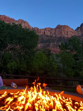 We stayed at the Holiday Inn Express in Springdale and it was perfect. It was a short drive to the park every day and was a great place to relax at the end of the day. They have a big patio with firepits and excellent views, where we had drinks and snacks at the end of the day. They also have a pool and hot tub. They do a big breakfast which was really nice before our big hikes.