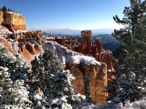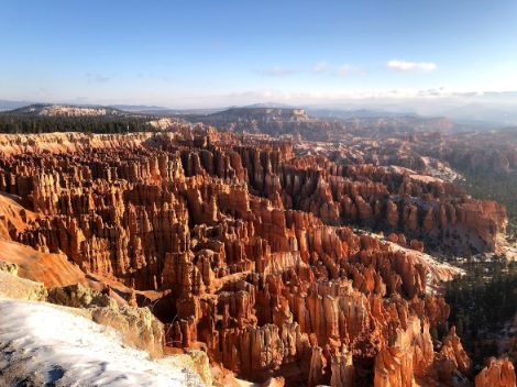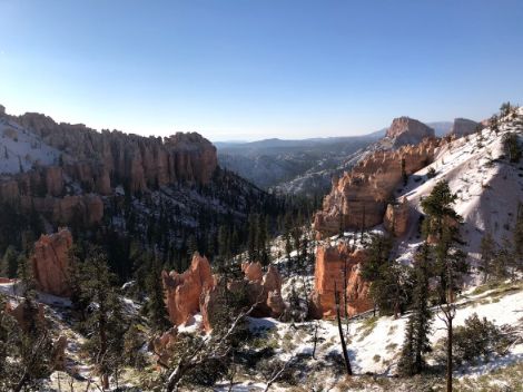 We arrived at Bryce in the early evening and drove to Sunrise Point to watch the sunset over the canyon. In the morning, we woke up early and returned to watch the Sunrise at Sunrise Point over the hoodoos. It is important to mention that it was FREEZING in Bryce during our stay so we had a unique experience. The high was only in the twenties and it was snowing when we arrived. On one hand, the cold weather meant the park was basically empty except for a handful of visitors. However, it was COLD. The scenery is incredible, but it’s not the most fun to hike in such extreme temperatures. I think on a normal day, it can be very busy at the park so it is a good idea to start early.