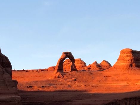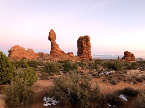 We drove from Capitol Reef to Moab, where we stayed for the next two nights to access Arches and Canyonlands NP. Arches NP is different from the other four national parks. While you can do a couple of longer hikes, most of the hikes are shorter so you can plan on more driving if you’re wanting to see a lot of the arches. It’s also quite popular so busier than some of the other parks (busier than Capitol Reef and Canyonlands, but not as busy as Zion). When we arrived our first night, we hiked to the 0.5 mile mark to view the sunset at Delicate Arch. There are three viewpoints so you can hike 3 miles from Wolfe Ranch up to the arch, but we didn’t want to go back down in the dark and were ready for dinner so we opted for the shorter trail. There’s another viewpoint that is only 100 yards away, but it’s worth the short hike if you’re able to get to the viewpoint. The sunset is also beautiful over Balancing Rock.