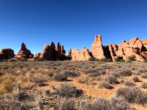 I read that the stargazing is incredible in Arches, but it was really cold when we visited, so we did not go to the park at night. In the morning, we hiked the Devils Garden hike to the Double O Arch (4.1 miles roundtrip, not including the spur trails we took), which is a fantastic hike. Part of the trail is primitive so there is some minor scrambling. You can hike a loop and actually take the primitive trail for longer (7.8 miles roundtrip) or you can make it an out and back. You’ll get to see several arches so it’s well worth it! We saw Tunnel, Pine Tree, Landscape, Partition, Navajo, and Double O arches.