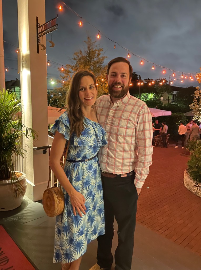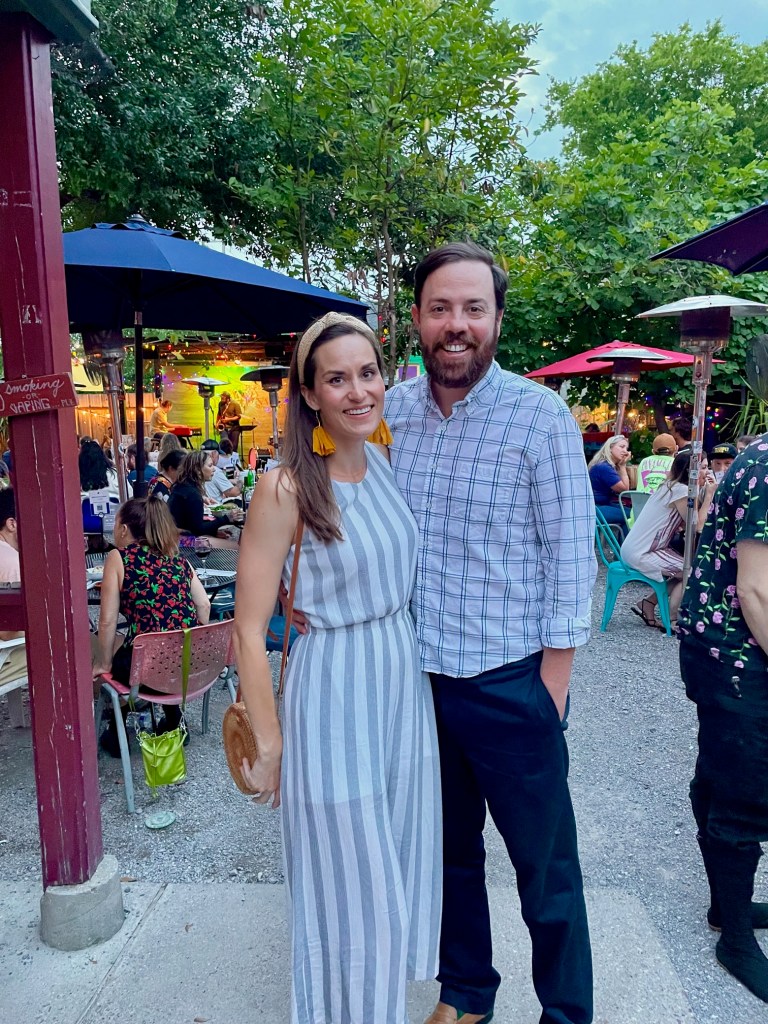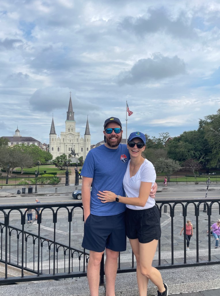 Recently, Alex and I spent a few days in New Orleans to celebrate our eleventh anniversary. We love New Orleans, but hadn’t been in several years. Fun fact: our last visit was when I was almost 37 weeks pregnant with our first baby in the heat of September. Great time to go to New Orleans, right? Ha! We’ve also previously visited for a long weekend away and have both celebrated friends’ bachelor and bachelorette parties. We also attended Jazz Fest with friends in 2012, about two weeks after we got married! Our 2023 visit was a special one as we were celebrating some personal accomplishments in addition to our anniversary, so we wanted to really relax and treat ourselves. And what better way than to enjoy delicious food and great music for a few days?