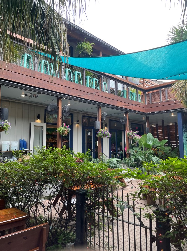 We live in North Florida so if you’re road tripping from that region, I have a few more recommendations for your drive. On our way over, we spent the night in Orange Beach, AL, and ate at Playa for dinner. Orange Beach is beautiful and generally less developed than many of the Florida beaches I’ve visited. I wanted fresh seafood on the water so a friend recommended Playa. I had the fried coconut grouper and Alex had the island gulf shrimp. Both were fantastic – fresh and flavorful! After dinner, we walked around the marina and admired the big yachts as the sun went down. (Note that if you’re looking for a sunset view, this is not the place to go).
