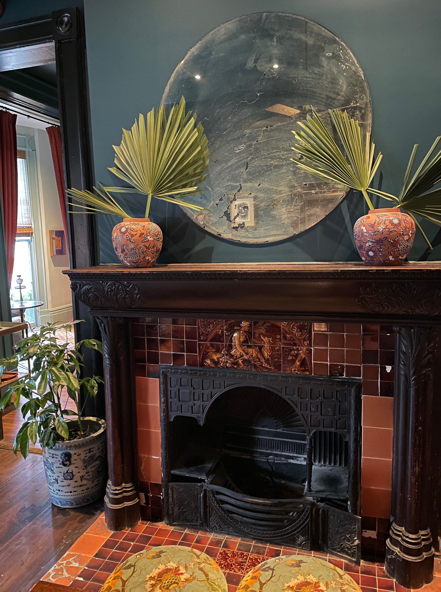 The Chloe has the most excellent new-school New Orleans lunch menu. We ordered a few starters to share – the smoked pork belly lettuce cups, crawfish mac and cheese, and deviled crab. Everything was superb, but check out the deviled crab dish in the photo I snapped below. It was stunning! The Victorian home where the Chloe resides is beautiful and stylish – filled with impeccably restored rooms and art-filled parlors. We especially loved the alligator stair runner at the entrance. We ate in the dining room, but you can also eat on/by/in the patio, pool, and bar.