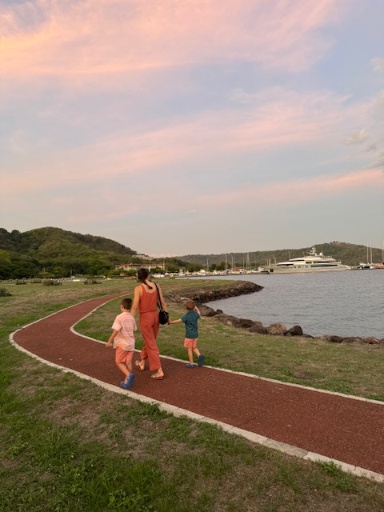 That afternoon turned out to be very rainy, but we spent a fun afternoon playing cards and enjoying a champagne and Fresca happy hour on our balcony. Some of the best memories are the unplanned moments! Once the rain let up some, we took a golf cart to Chao Pescao for a tapas dinner. Chao Pescao was one of my favorite meals of the trip and definitely my favorite in Papagayo. The menu features dishes from several Central American, South American, and Caribbean nations. We got several dishes to share and everything was excellent. Even though we were completely stuffed, we couldn’t resist the churros with chocolate and caramel sauce for dessert! I also loved that the kids menu included healthy options different than the typical kids menu fare.
