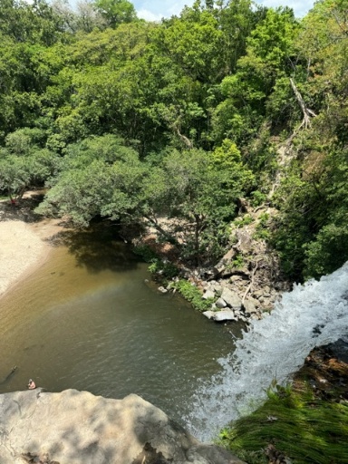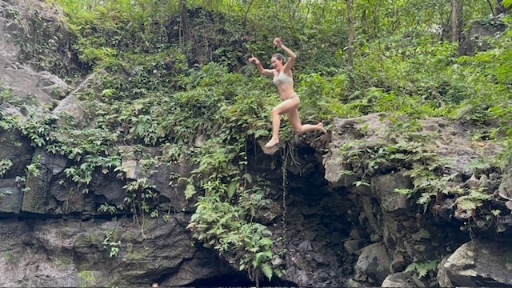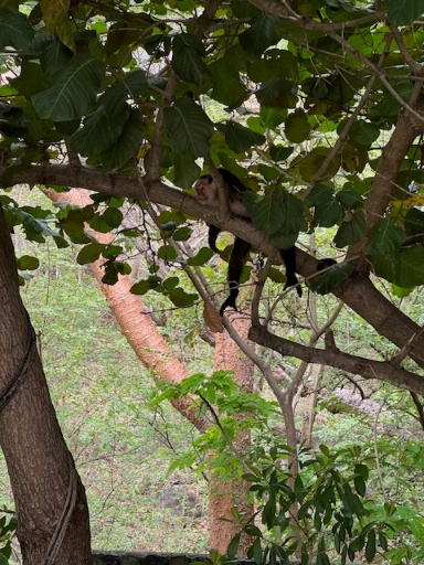 While we were at the falls, we met a local guide, who we hired to lead us up a trail and pointed out all kinds of wildlife. We typically wouldn’t hire a guide for a hike, but we would have walked right by much of the wildlife without him! We saw howler monkeys, iguanas, and lizards near the waterfalls. On our hike, we saw bats, frogs, an owl, and a crab. We didn’t know crabs could live anywhere besides the beach! The guide led us to a viewpoint at the top of the falls, and to a jumping pool, where Alex and I climbed up the rocks and jumped in while the boys cheered us on!