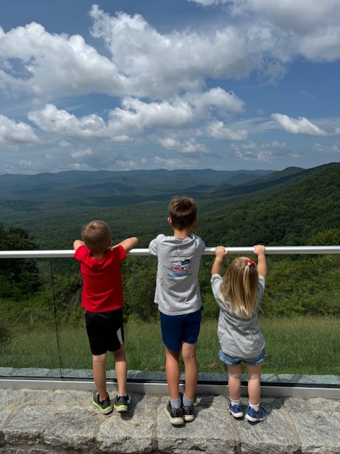 Once we rejoined the rest of our family at the visitor center, we let the kids play on the playground for a while before driving to the Upper Observation Platform to view the top of the falls. After, we enjoyed our lunch on the patio of the Amicalola Falls Lodge. Amicalola Falls State Park is a great place to spend the day!