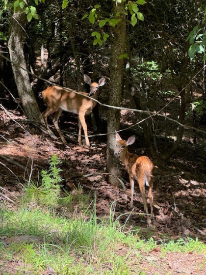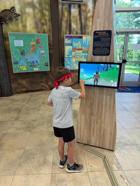 After the hike, we stopped at the Carters Lake visitor center at Carters Lake. The visitor center has several interesting and educational exhibits for kids, is the start to a short nature trail, and offers a beautiful view of the lake from behind the building.