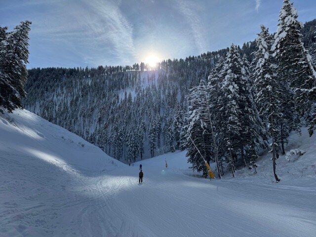 I would note that Baldy is not for beginners. The terrain breakdown is as follows: 27% beginner, 44% intermediate, and 29% advanced/expert. However, I’d caveat that many of the greens skied more like Colorado/Utah blues and many of the blues skied like blacks due to the runs being steeper and groomed less frequently. I’m a solid intermediate skier and I felt more challenged than usual. That being said, we thoroughly enjoyed the long runs (up to 3 miles!) and stunning vistas.