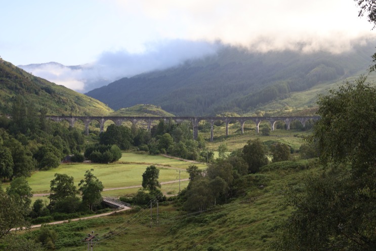 Skye – We had an early morning as we wanted to spend two full days in Isle of Skye but only booked one hotel night due to cost and availability. We took the 8:30 am ferry from Mallaig to Armadale. Make sure you reserve this well in advance as it is a small ferry and books up in the summer. On our drive from Appin to Mallaig, we stopped to see the Glenfinnan Viaduct, also known as the famous bridge that the Hogwarts Express goes over in the Harry Potter movies. You can actually take an 84-mile round trip train ride on the Jacobite Steam Train to channel your inner Harry or Hermione, but we opted to just see the famous 21-arched aqueduct.