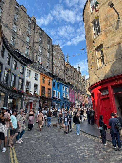 In the morning, we took a quick walk from our hotel to Kings Cross to catch the Azuma LNER train to Edinburgh. The 4 hour train ride was fantastic – we all loved seeing the English countryside from the large windows while we played Harry Potter trivia and nibbled on shortbread.