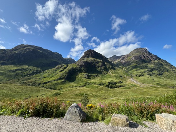 On our second day in the area, we set out for one of my favorite hikes of the trip, Coire Gabhail, or The Lost Valley, (park in the Three Sisters Car Park). The trail gradually, and at some parts steeply, climbs until reaching The Lost Valley. We stopped multiple times to take in the dramatic view of the Three Sisters rising out of the skyline, and enjoyed the view of the valleys while we rested and ate our snacks.