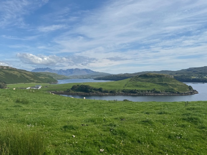 We ate dinner down the street from our hotel at The Old School, where we got takeaway fish and chips and beef casserole from the bar as there were no tables (again, with few restaurants and many summer visitors, it’s a good idea to make a reservation). We drove to see the historic Dunvegan Castle down the road, which has been occupied by Clan MacLeod for 800 years – incredible!