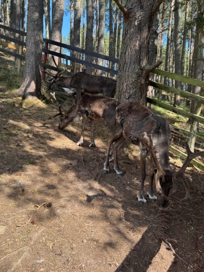 Once you check in, the staff will give you directions to another parking area where you go to meet your guide and take the short path to the Hill. The entire experience lasted about two hours. After the presentation and reindeer feeding, you have the rest of the time to enjoy and take pictures of the herd. The most surprising part of the experience to me was that everyone else on the tour left within a few minutes after the feeding, so our family essentially had the whole Hill to ourselves, aside from the staff. We all enjoyed watching the reindeer run back and forth and play with one another. I can only imagine how magical (and popular) the experience is in the winter when there is snow on the ground and the reindeer have their full coats.