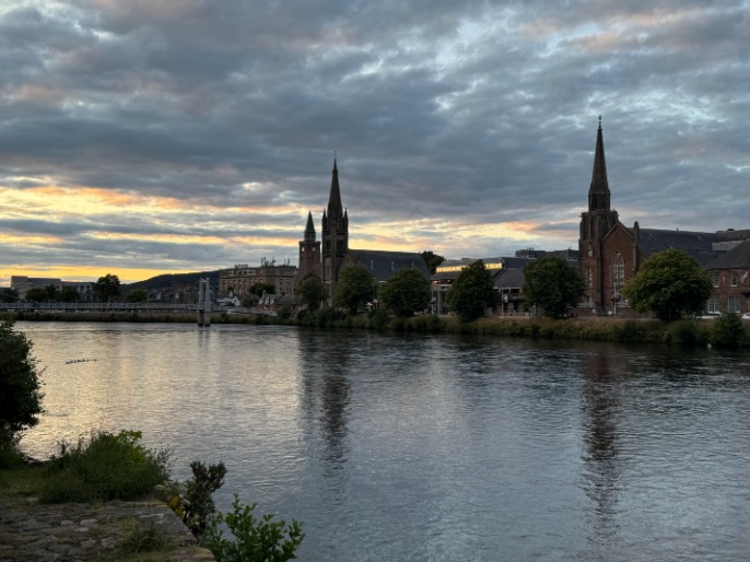 Inverness – Unfortunately, due to our flat tire, our time in Inverness was super short since we arrived late and had to head to the airport early the following morning. All we had time for was a visit to the tartan shop at the Highland House of Fraser (luckily located right next to our hotel, the Premier Inn Inverness Centre River Ness), and a walk around the Ness Bridge and Greig Street Bridge (a passenger bridge). Inverness seemed like a beautiful city from what we saw, and I think if we returned to Scotland, we would use it as a starting point for a road trip around the Highlands.