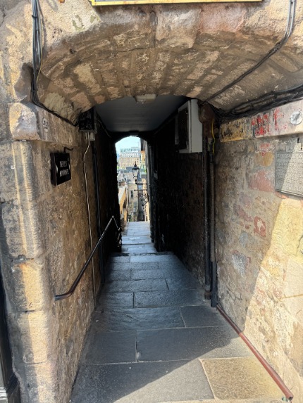 Edinburgh has a robust bus system that runs 24 hours a day, so we had no trouble finding a bus to bring us from the hotel to the city center. After a quick lunch of kebab pizza (genius!!) at Clamshell on the Royal Mile, we met our guide Ignus for a Free Walking Tour of Old Town. Ignus was a wealth of knowledge about Scottish history and life, and educated us in an accessible and interesting way. I found myself laughing out loud multiple times at his subtle Scottish humor. The tour took us down the Royal Mile, through several of the famous Scottish closes, iconic Victoria Street, the Haymarket District, and ended at Greyfriars Cemetery.