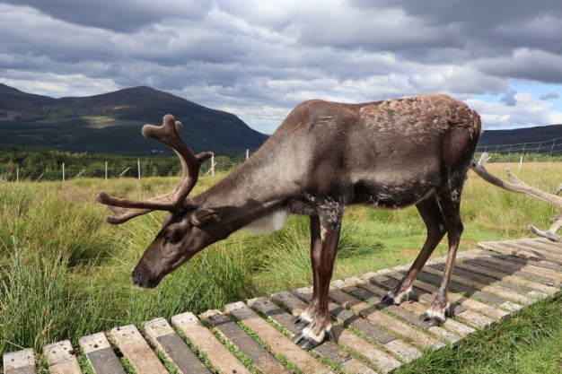 The main reason we were in Aviemore was to visit the Cairngorm Reindeer Herd in Cairngorms National Park. The Cairngorm Reindeer Herd is the only free-ranging herd of reindeer in the United Kingdom. The reindeer were originally introduced from Sweden in 1952, based on the belief that they were native to the area but had died off. Today, there are about 150 reindeer in the free-ranging herd. I had heard about the herd through another blog while researching for the trip and knew that my boys would love the experience. Luckily when we got the flat tire, the staff at the Reindeer Herd were very accommodating and were able to switch us to the last afternoon tour. If you are not able to do a full tour, the Paddock is open to the public and you can view a couple of the reindeer and learn about the herd through educational kiosks. The Glenmore Visitor Center is a short (walkable) distance away if you need a bathroom, snacks, or water bottle refill.