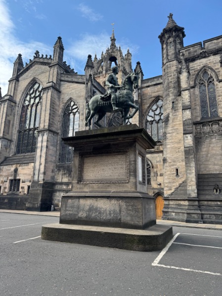 Edinburgh has a robust bus system that runs 24 hours a day, so we had no trouble finding a bus to bring us from the hotel to the city center. After a quick lunch of kebab pizza (genius!!) at Clamshell on the Royal Mile, we met our guide Ignus for a Free Walking Tour of Old Town. Ignus was a wealth of knowledge about Scottish history and life, and educated us in an accessible and interesting way. I found myself laughing out loud multiple times at his subtle Scottish humor. The tour took us down the Royal Mile, through several of the famous Scottish closes, iconic Victoria Street, the Haymarket District, and ended at Greyfriars Cemetery.